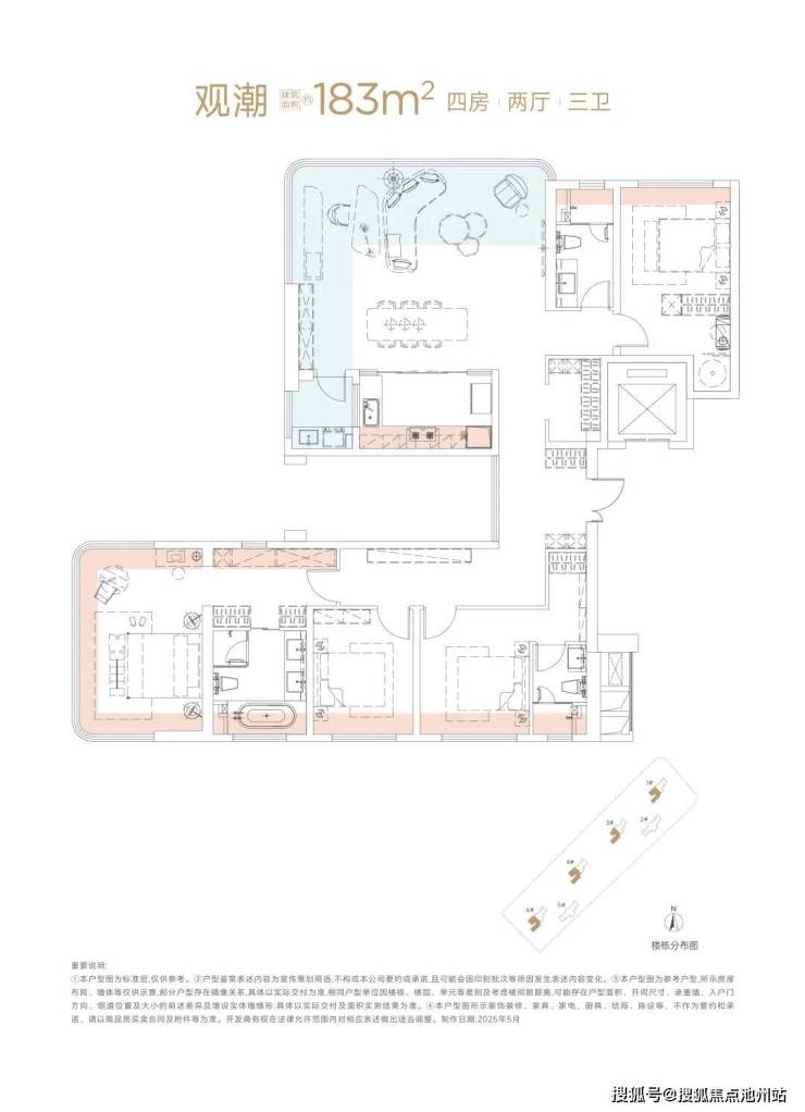 超高得房率:作为准四代住宅,灵动阳台 + 飘窗全赠送,得房率超高,143 平得房率达 103%,183 平更是达到 113%,实现 “零公摊” 甚至 “负公摊”,性价比凸显。