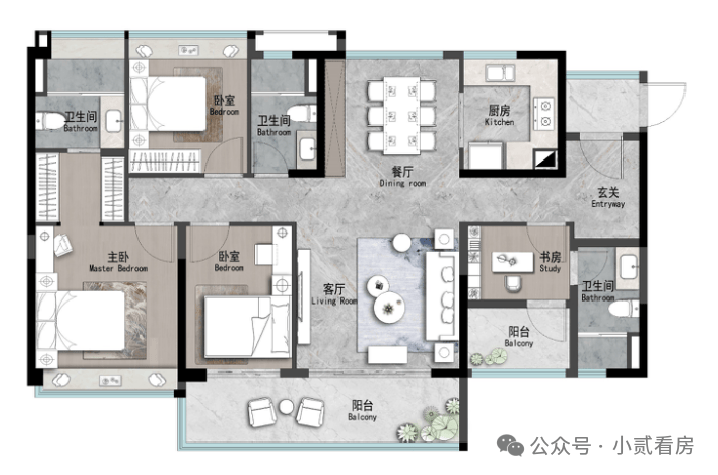 4号楼和3号楼是去年的户型,使用率低一些也比较靠近路边。