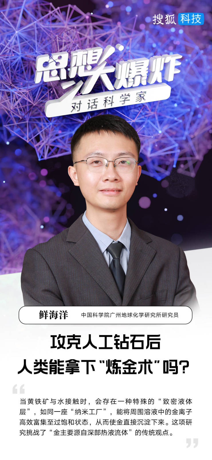 搜狐科技《思想大爆炸——对话科学家》栏目第148期,对话中国科学院广州地球化学研究所研究员鲜海洋。