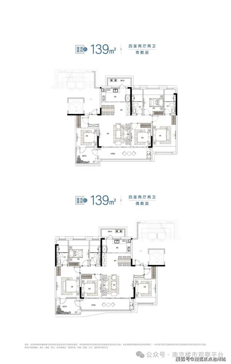 建面139㎡四房两厅两卫(奇数层)