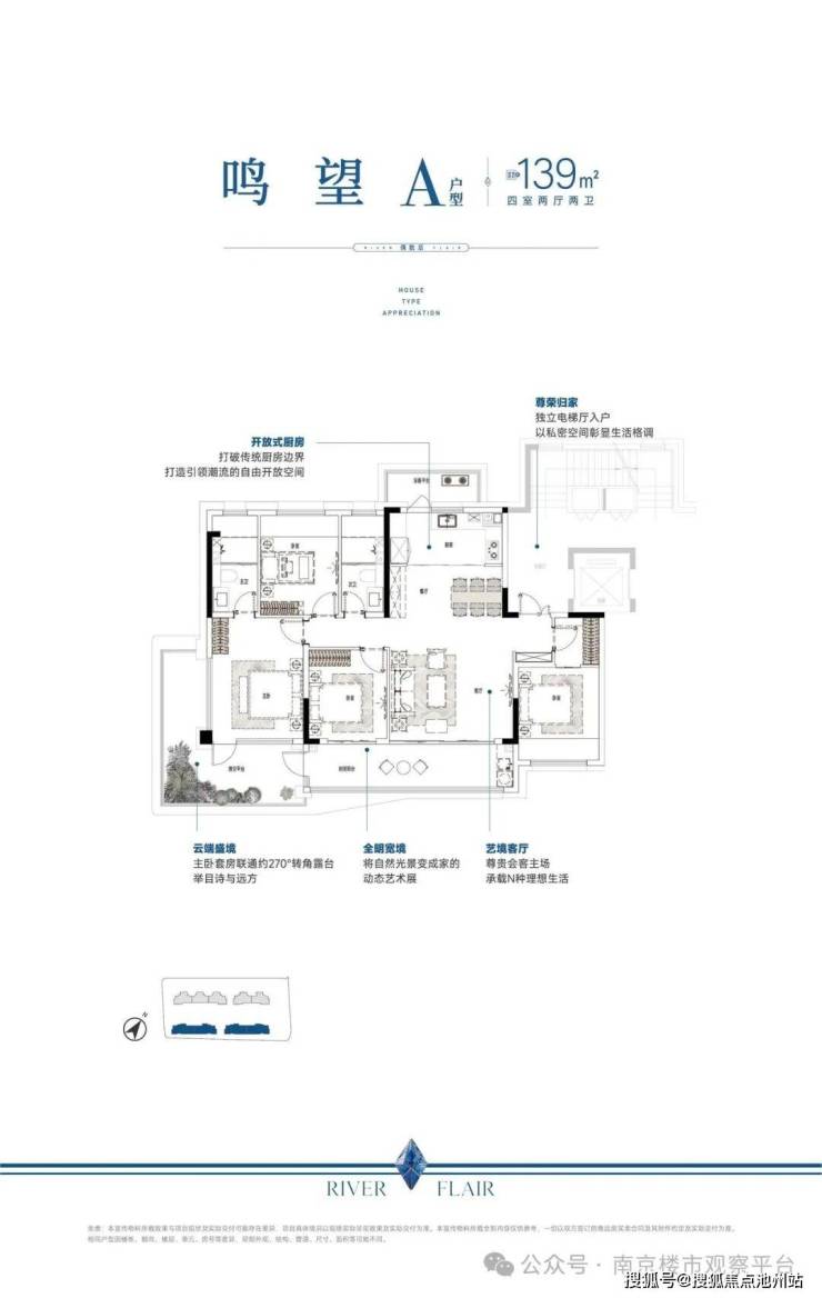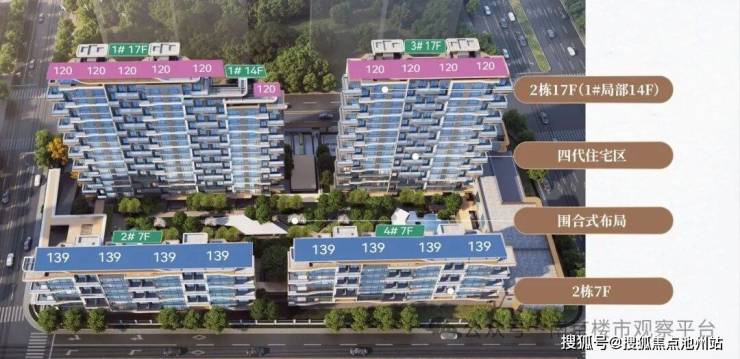 项目共规划4栋住宅,其中1、3号楼为17层小高层(1号楼局部14层),2、4号楼为7层洋房,一楼全部设置架空层,后期预计打造为童趣剧场、康体运动、书吧、健身房等。将打造第四代住宅,超高得房率,户户带大露台,主力建筑面积约120、139㎡,共计202户。