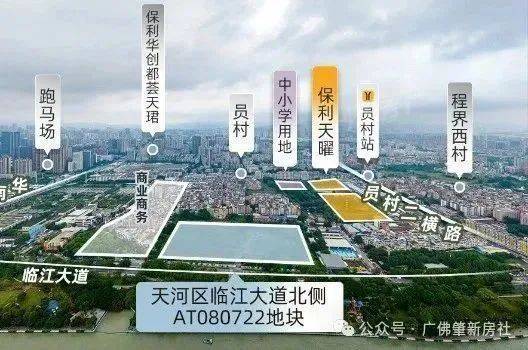 地块位于规划花城大道南侧,紧邻华南快速干线、黄埔大道中、临江大道及科韵路等主要交通干道,这也是天河比较难得的靠近地铁站的盘,地块东北侧距离地铁5号线与11号线交汇的员村站仅150m,5号线+11号线可以连通广州最核心的几个商务圈---珠城、琶洲、天河北、白鹅潭等等,通达性很强。