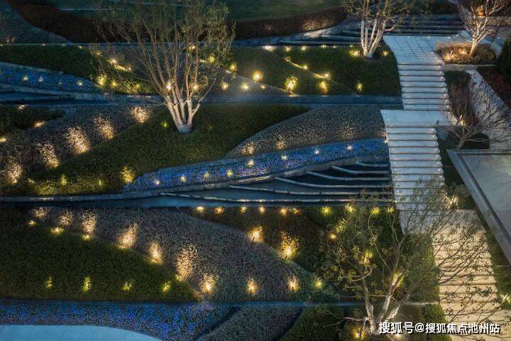 为了给业主增加更多的社交场景和微度假生活方式,南通澐璟在规划之初,拿出了极高配比的绿化用地来做景观。在寸土寸金的中芯贵壤之上,匠造 约10000㎡「翡翠之钻」 ,与会所、泛会所空间、实现视线、功能联动,形成长三角罕见的中央景观大境。