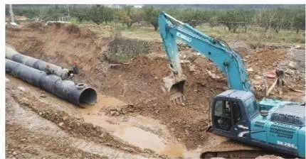 2月25日下午,记者一行驱车从发展大道出发,沿着官庄水库至梅子垭水库连通工程项目,一路向东,沿途十几个作业面正在紧张施工。