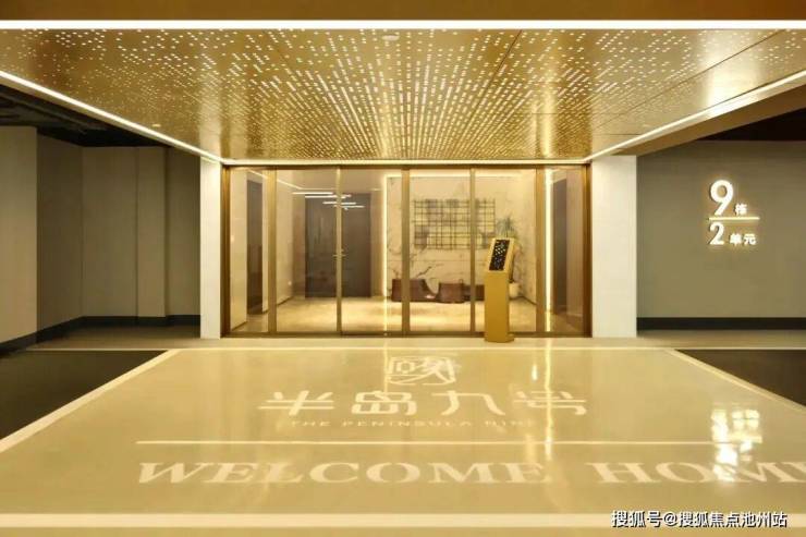 半岛九号一改传统立面单一配色的固有印象,在高级灰色调+大面积玻璃的基础上,通过增加局部横向香槟色线条提升立面精致感。