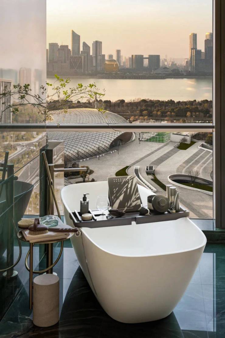 一面正对“日月同辉”和市民中心,没有偏角,更没有遮挡。杭州「新世纪中轴龙脉」正在这一视线上,自武林中心—市民中心—奥体中心,这一格局奠定了杭州整体城市的气运走向。另一面近瞰“大墨镜”和“莲花碗”,世界赛事、重量级政经盛会经纷至沓来,伟大时刻在此上演,媲美世界湾区的时代发展立意尽汇于此。