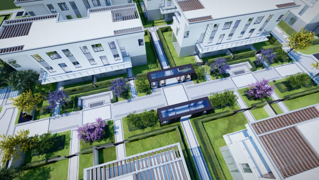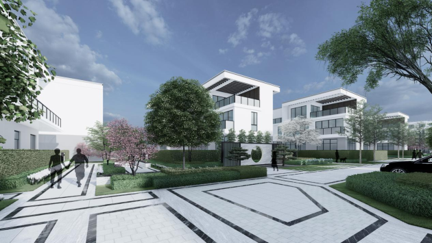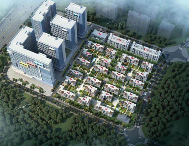 一条景观主轴,十二条古韵巷道,四系主题园林,坡地景观序列,配以代表居士风骨的黄山四木,杏、樱、桂、松,诠释着人文淡雅的卓、逸、瑞、毅四中品质。