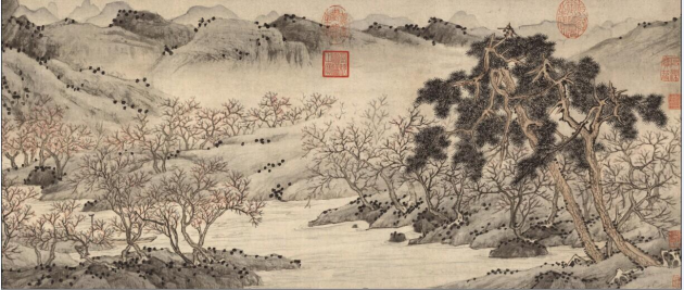 拙政园建成的30年后,嘉靖甲寅二月既望这一天,八十五岁高龄的文徵明,绘制完成他“桃源”主题的最后一件作品《桃源问津图》,这幅图宁静平和,洋溢着人间景物的清新秀雅。