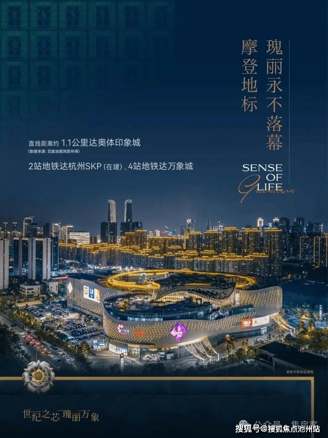 项目距约 25 万方奥体印象城(含山姆超市)直线距离约1.1公里,近享在建约20万方SKP高端时尚百货商场、萧山万象汇、万象城、来福士等地标商业配套,瑰享高阶繁华烟火。