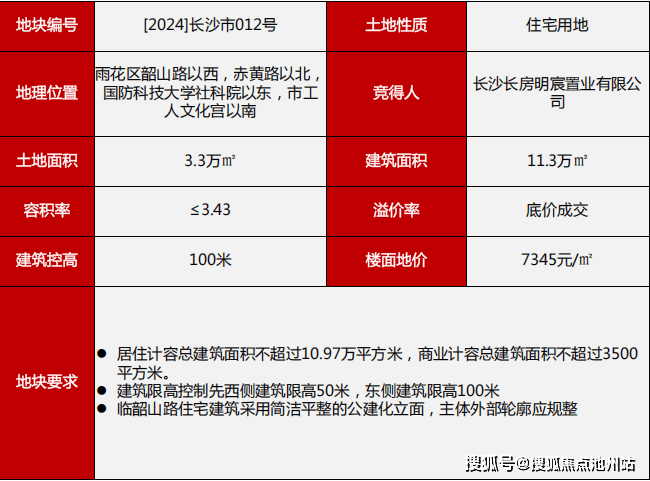 2024 年的5月本土国企长房集团底价拿下长沙市012号东塘华狮啤酒厂棚改地块。容积率:≤3.43,楼面价:7345元/㎡,建面11.3万㎡。