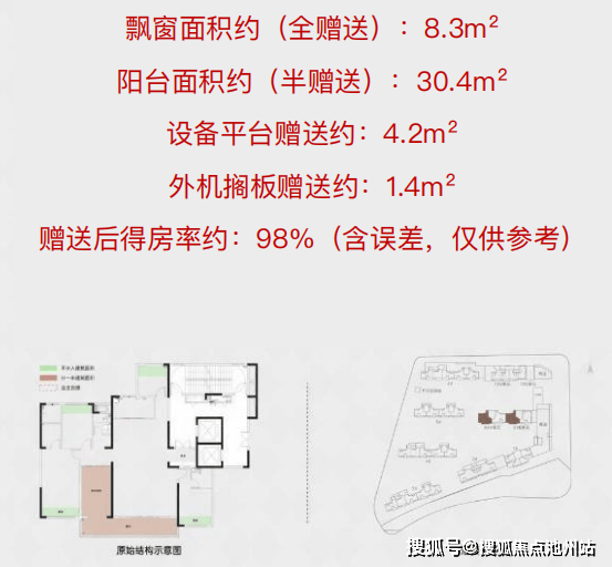 4房2卫格局,客厅面宽4.5米,阳台面宽7.3米,客厅可与南向次卧打通;形成超长的南向采光面。全赠送的全屋飘窗+ 半赠送的生活阳台和设备平台,实用面积约117m²,初步算得房率约96.8%。