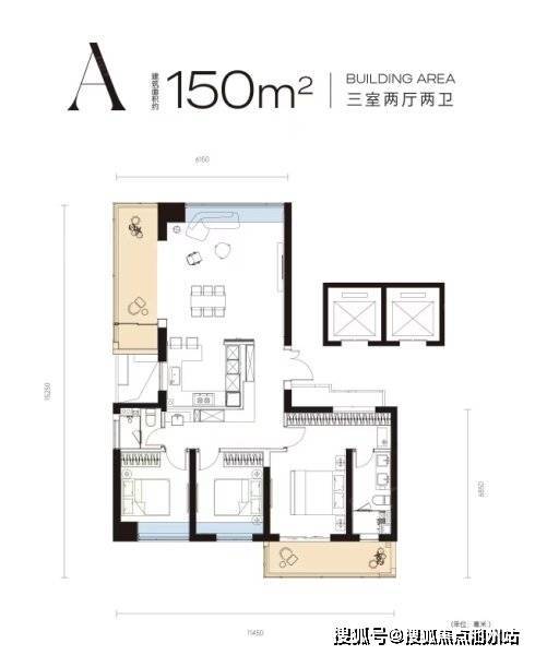 楼盘户型:4种户型,建面:150-175㎡ 3室2厅2卫 (建面:150m²)