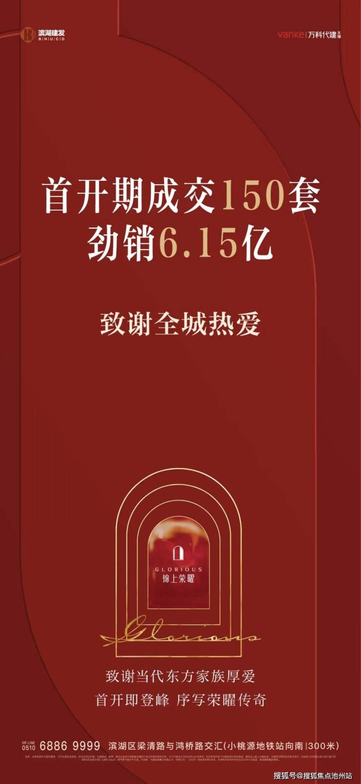 锦上荣曜首开的现象级热销早有预兆。自项目入市以来,锦上荣曜就受到了行业内外的广泛关注。4月12日,在万众瞩目下海派东方美学示范区开放,仅两周到访人数就突破2000组,霸屏无锡。4月30日,项目选择在太湖皇冠假日酒店进行首次开盘,足见项目底气与热度。这份销售热度在五一小长假期间持续增长,引发了全无锡的广泛关注,创下热销传奇!