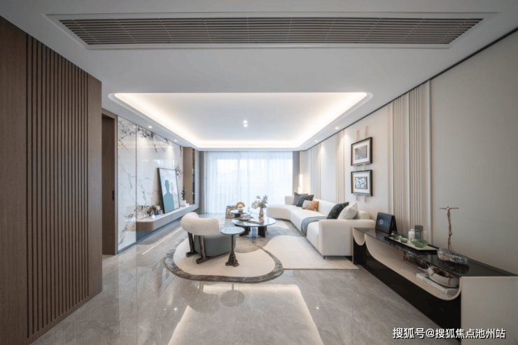建面约189㎡户型,大四房、双套卧的布局,在室内尺度感和功能性上都做到了恰到好处的平衡。三个起居室都朝南向排布,每个房间都有全天候阳光关照。