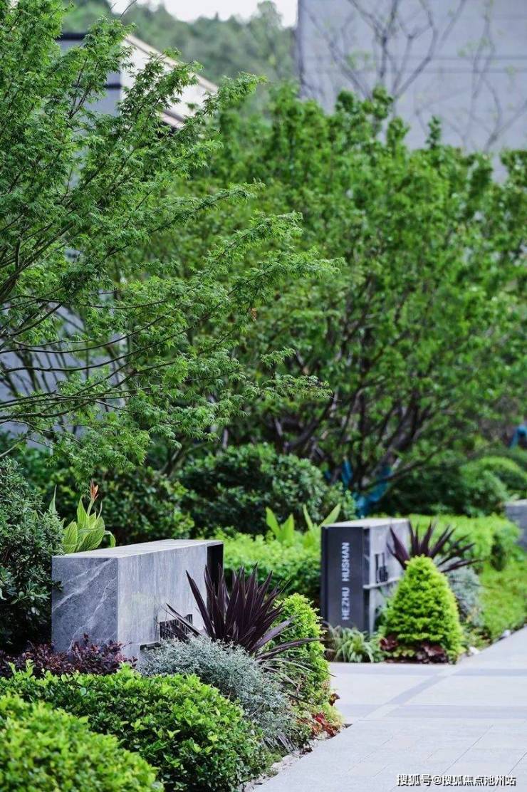 光是现场我认出的,就有乌桕、罗汉松、榉树、红枫、樱花、海棠、八仙花、银杏、桂花等等。而且,很多珍稀树种都是全冠移植,只为业主入住就能享受到枝繁叶茂的美景。