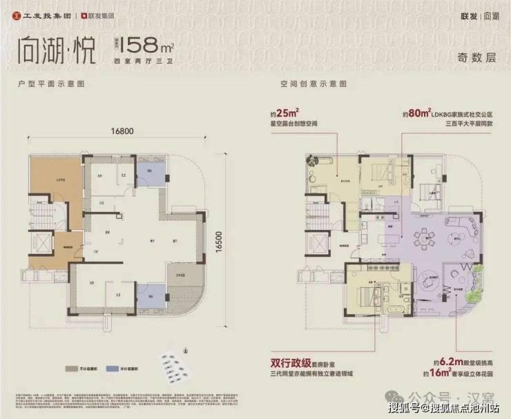 建面约158平奇数层,四房两厅三卫:
