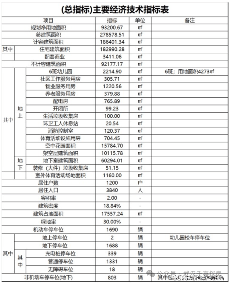 1.项目占地约9.32万方,总建面约27.9万方,计容建面约18.6万方,住宅建面约18.3万方,整体容积率约2.0,居住户数1200户,地下机动车停车位1688个。配建6班制幼儿园.