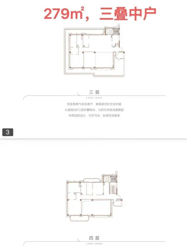 ●产品户型:两叠(上叠392㎡、下叠437㎡),三叠(上叠 285㎡、中叠279㎡、下叠305㎡)