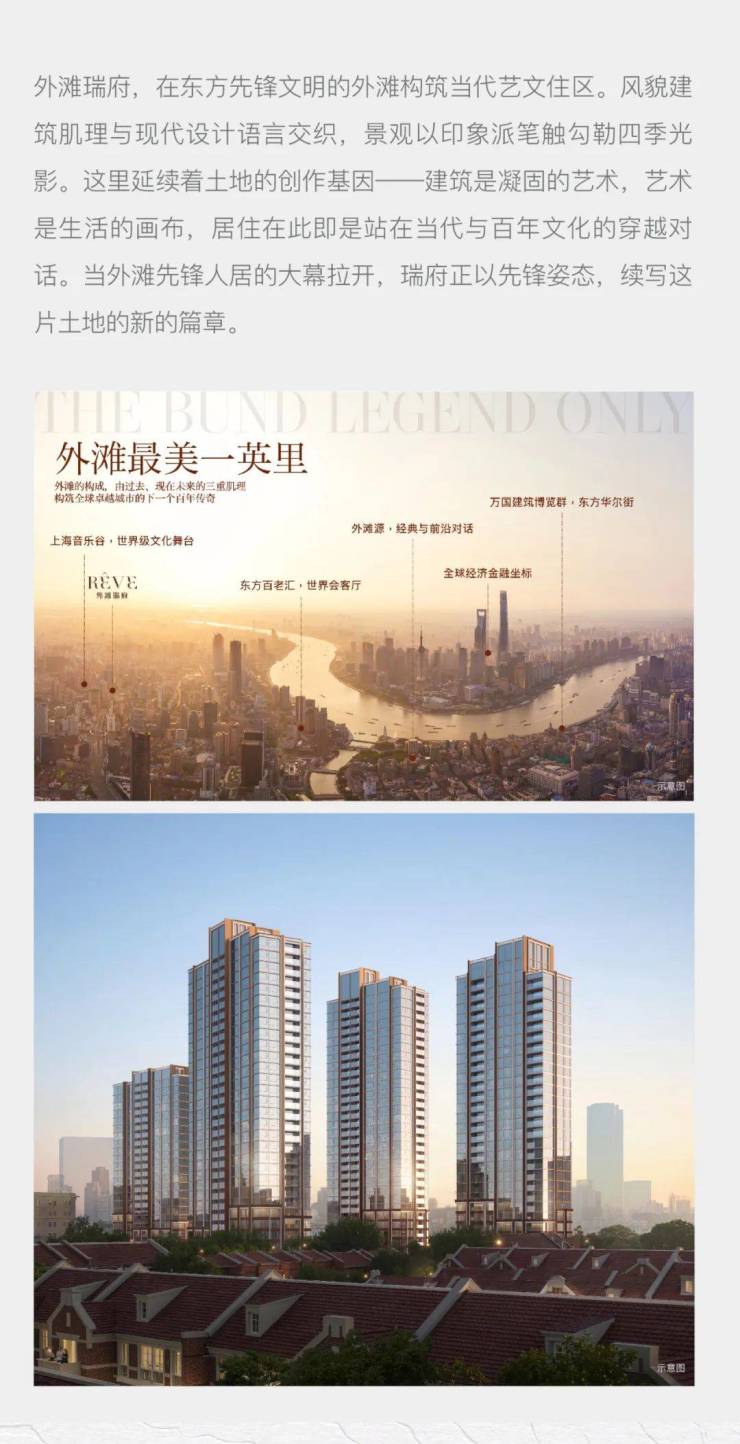 项目推广名为“外滩瑞府”,开发公司为“上海华润瑞宸置业有限公司”。本宣传资料仅供参考、不作为要约邀请,相关内容不排除因政府相关规划、规定及开发商未能知晓的原因而发生变化,本公司保留对宣传资料修改的权利,敬请留意最新资料。以上周边配套信息仅供参考,教育设施仅为现状描述,不代表出卖人对此提供保证,未来学校名称、办学性质、规模、招生条件及区域等须以教育主管部门及学校最新政策为准。本资料所示项目立面样式、建筑形态、材质、门窗开启方式及大小划分均仅为阶段性概念示意,不代表最终交付标准,仅供参考,最终以双方签署的商品房预售合同及相关附件、政府审批及实际交付为准。本资料中所有资料,包括图片、插图、文字描述等仅供参考识别或分享交流之用。发布时间为2025年6月。