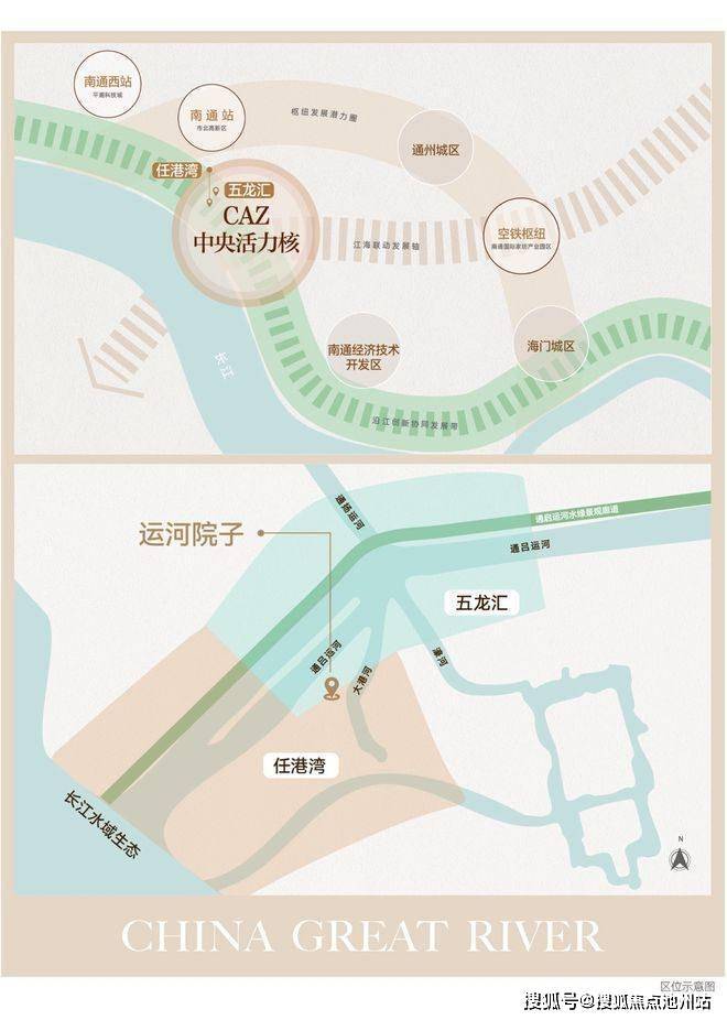 五龙板块,向南是南大街商圈,向北是正在蓬勃发展的综合性现代新城——市北新城,往西是正在建设中的滨江国际街区(滨江片区),坐享老城成熟配套,虹吸老城外溢商业、人口等,起到了新老城区商业资源、生态资源集结的作用。乘政策利好辐射与城市中心版图扩张,五龙板块生态、交通、商业、教育等配套资源正在全面升级,形成南通2035中央活力区。运河院子,正位处南通2035CAZ未来核芯片区,坐享百里运河昂贵一英里的稀缺资源。