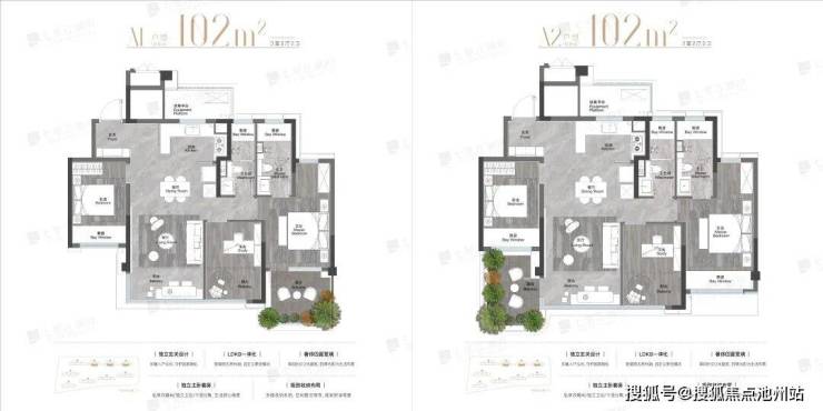 建面约102㎡三房两厅两卫,是当前江核待售纯新盘中的最小面积段,总价门槛相对较低。