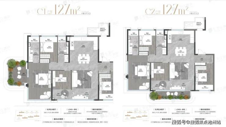 建面约127㎡四室两厅两卫,四开间朝南,约13.6米南向观景面,约0.55超高窗墙比诗意与生活兼蓄并存,拥有超乎想象的采光与观景面。
