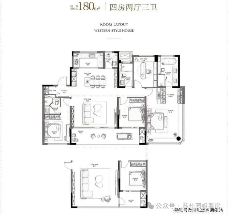 先来看关注度最高的约180㎡户型图,全盘仅47套,首开32套,下手一定要趁早!
