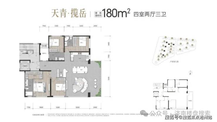 洋房约180㎡四室两厅三卫:私享入户电梯前厅;约270°转角环厅+约7.7米开敞阳台设计,约16.3米超大南向四面宽,巨幅落地窗;入户设备平台,约5.5米面宽主卧,双开门+步入式衣帽间;约5.5米面宽豪华北套卧。