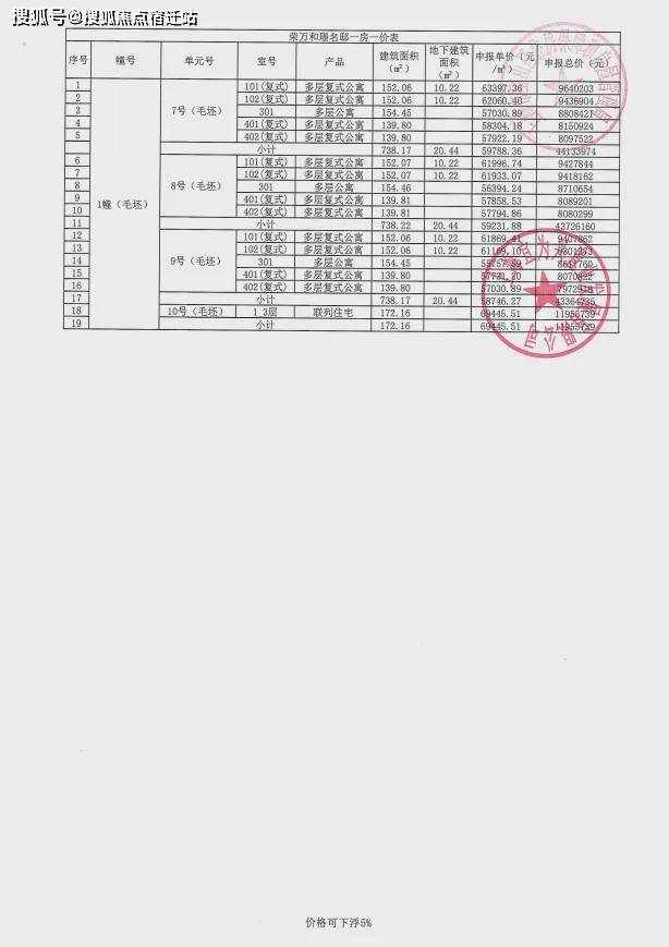 项目一房一价表