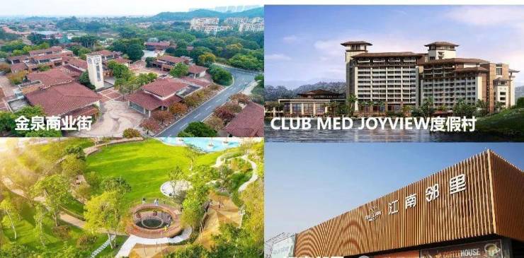 南门江南邻里(约2.18万㎡,涵盖肉菜市场、超市、便利店、餐饮店、水果店、快递站等)、松林小镇含西班牙风情商业街(约4.2万㎡);金泉商业街(约0.8万㎡)、西门商业街(约1.02万㎡)