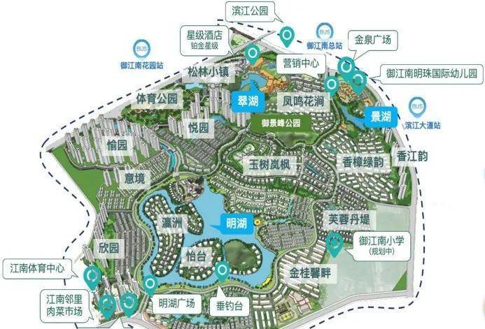 四公园:御景峰公园、明湖公园、滨江公园、体育公园(规划中),晨练、骑行、钓鱼、漫步好去处