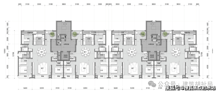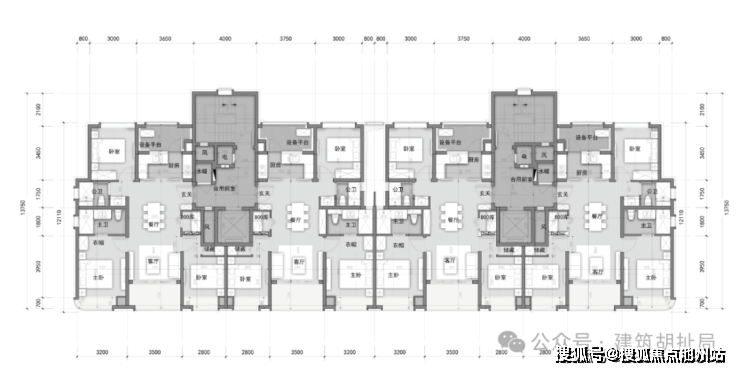 上图是107户型,18层,有阳台,赠送了飘窗和设备平台。我在之前关于保利项目的文章里说过,阳台是一个开发商能多卖一半面积,但是对购房者来说,没有任何赠送的东西,其实这玩意看图你也知道,就是那么一写,让你拆的,也并不是原来那种真正意义上的阳台。还是那句话,做阳台,远不如飘窗来的有诚意。南边两个卧室的飘窗是赠送,卧室空间进深足够,南次卧那个储藏间也是因为规范问题弄得,后期同样拆掉就行。北侧的设备平台,赠送的方式手法太不太不高明了。说真的我为了避免争议,不太会直接说项目哪哪哪很不好,说也说的比较隐晦。但是这个户型的赠送手法我真的忍不住了,可以说它白白浪费了这么好的政策。你说这个平台能干吗?后期就是生活阳台呗,放大白菜白面啥的,在屋里看不见。你要是把北卧室干掉一半,剩下一半做设备平台,能节约大约5平米空间,这5平米,你加大面宽,他不香么?阳台那里销售也计算全面积,做成飘窗照样不计面积,又释放几平米空间,加大面宽,他不香么?(再一次说明,阳台纯纯的增加可售面积但是对购房者没任何好处),所以说他这个户型,布局上可以,结构上也没问题,但是赠送这块,太不高明了。你看他一百二十多、一百三十多的高层,都是下图这样,这样多好啊,赠送全用上了,还直接增加了一个卧室,这样做,是不是实用了很多很多了?(别说面积小不好搞,看全是数字的那个项目110平的咋做的,还俩电梯呢)