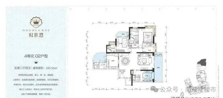 245.55㎡五室二厅四卫,三面采光,洋溢轩昂气度;主卧270度转角飘窗,观野狸岛、日月贝及无敌海景,饱揽城市繁盛;本项目臻品单位,海景资源值得一世珍藏;