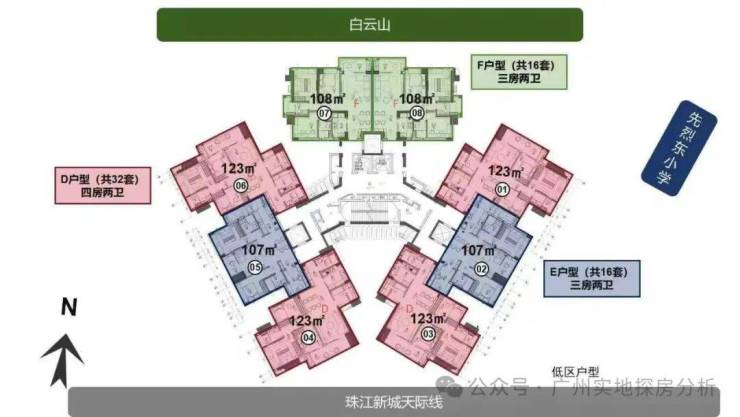 低区:4-11层,2梯8户,107-108-123平三房