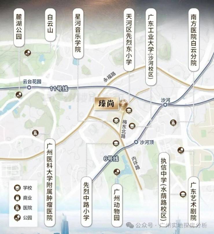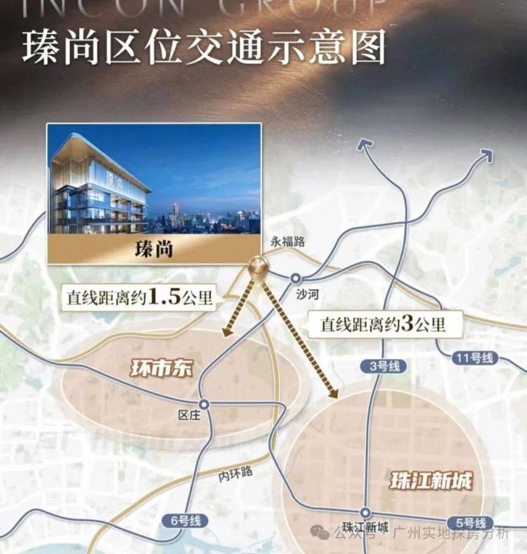 三地铁交织(5/6/11号线),距离6号线沙河顶站B出口约500米,1站至沙河站换乘广州大环线11号线,2站至区庄站换乘东西大动脉5号线。3站淘金,6站北京路、珠江新城。