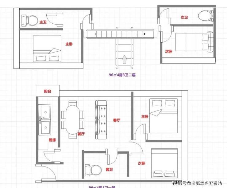96㎡4房3卫