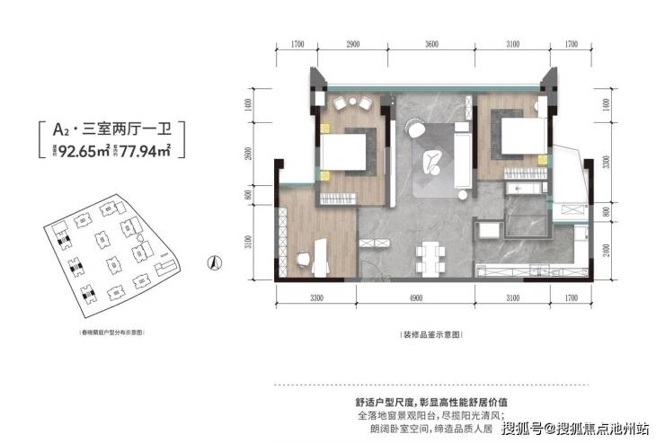 金鹏·春晓蘭庭 平层户型·建面/93㎡