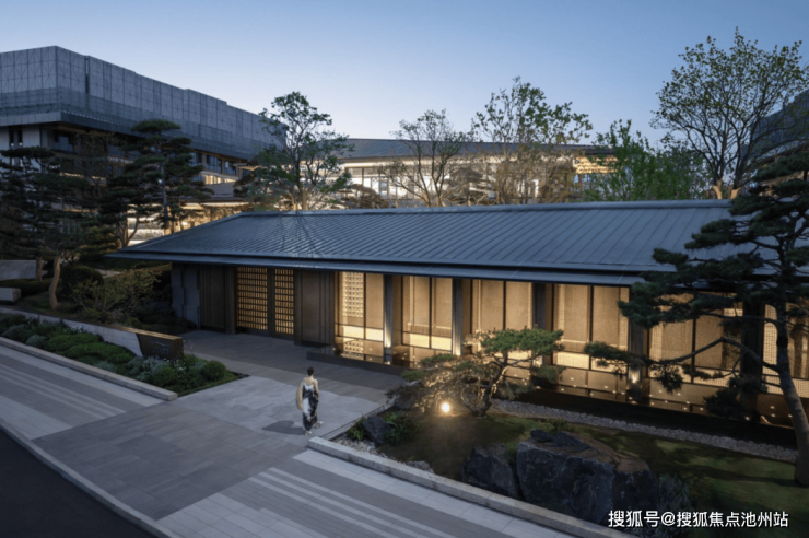 园林景观:承袭千年宋风礼制,以《千里江山图》为蓝本,打造宋风山水庭院,山、石、水、林、瀑、松、径、廊等元素处处彰显宋式美学的轻盈雅致。园区内 18 棵高大挺拔的油松,以及乌桕、红枫等中式意境植物,营造出一步一景的诗意氛围。