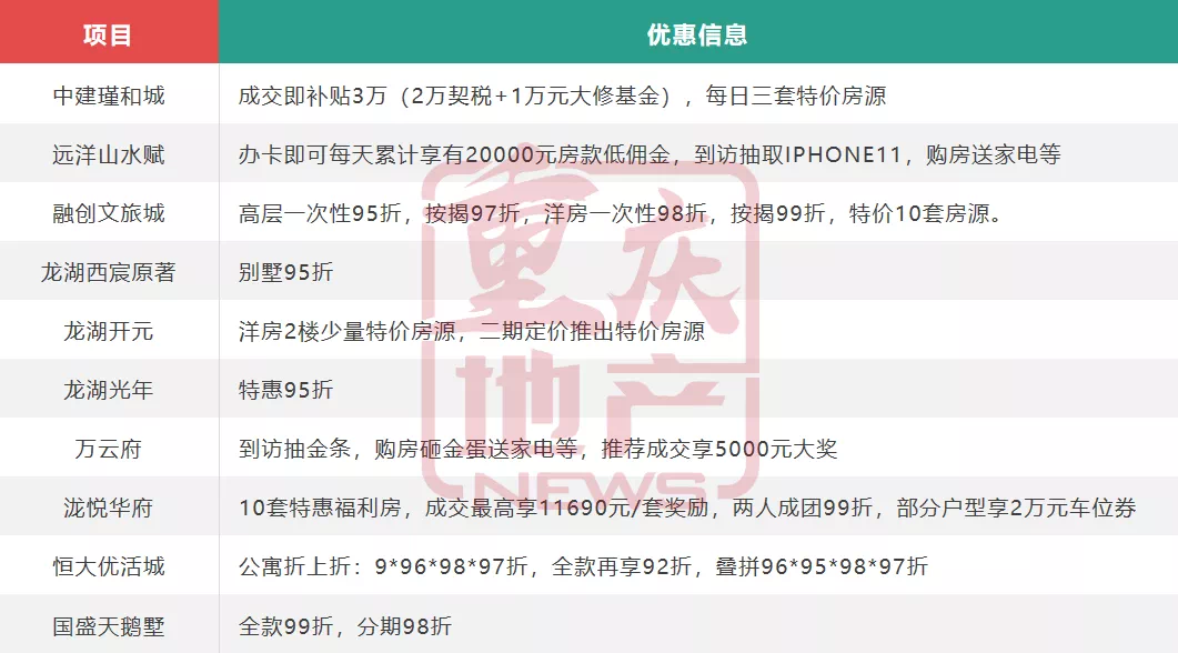 注:所有预售信息统计时间截止为11月1日,各楼盘具体优惠存在动态影响,最终优惠情况由开发商公示为准。