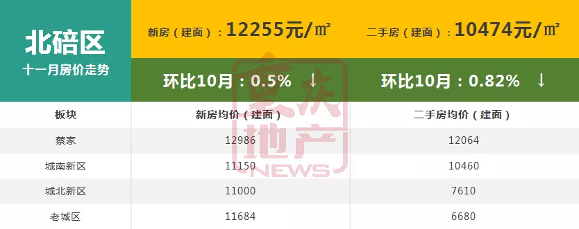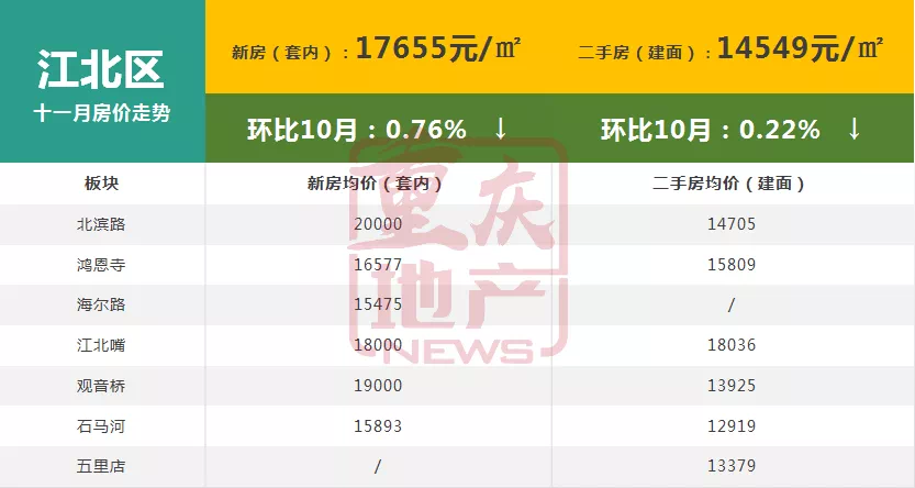 其中新房部分,南岸区下滑明显,达9%,纵观各大区域仅有两个区域较十月有明显上涨。