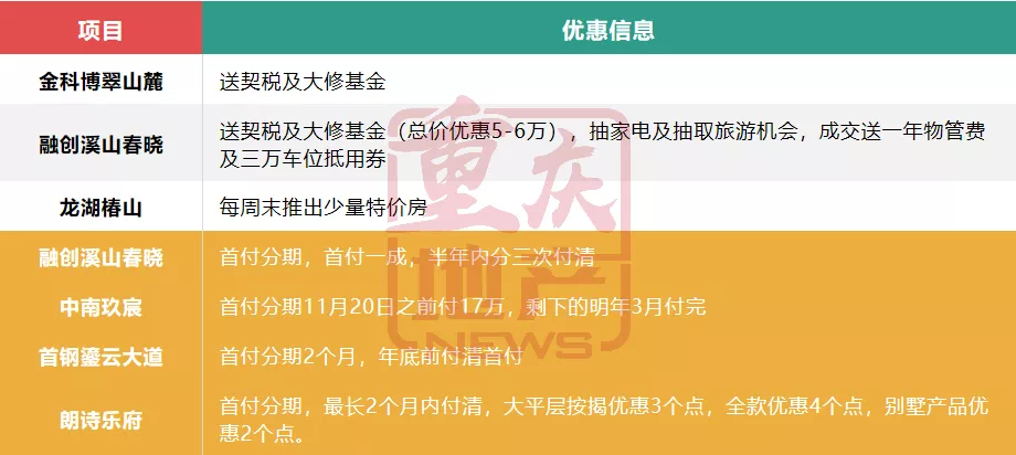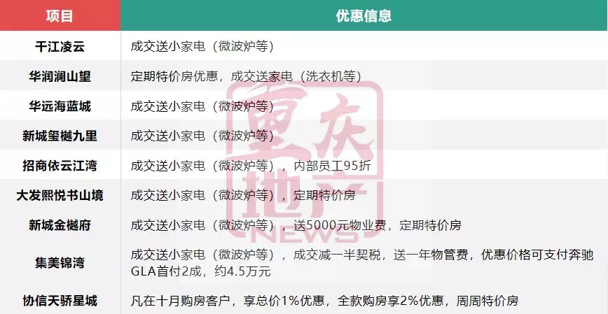 渝北区11月优惠动态 :大量优惠持续进行,刚需上车好时机!
