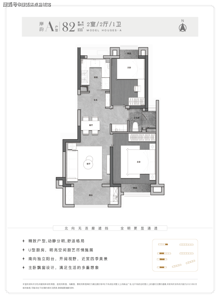另外这个户型能更好实现南北通透,客厅-餐厅-阳台-厨房一线连通。