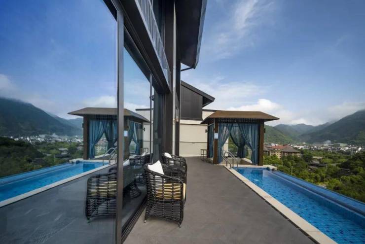 还可以去山顶的百米无边泳池一边畅游一边赏景,