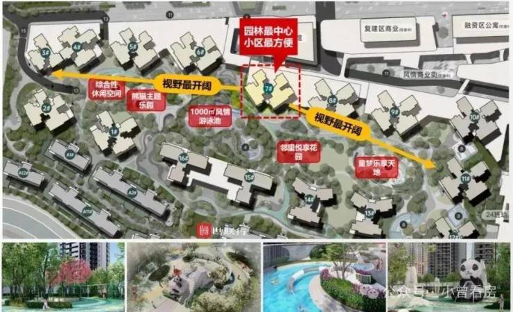 沿街商业、商业广场、大气入户大堂、风情游泳池、邻里悦享花园、观山眺台……