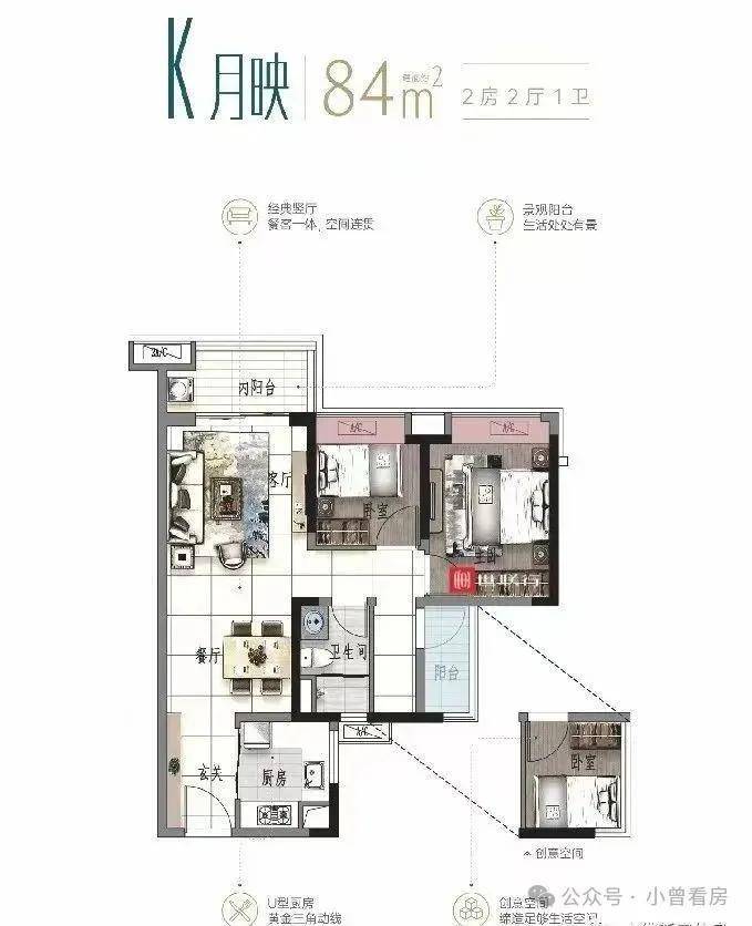 大多户型应用了竖厅设计,使得活动区跟休息区互不干扰,实现动静分离。年轻人在客厅开party,也不影响父母在卧室睡觉,这点好不好,谁住谁知道。