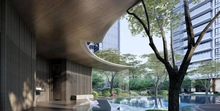 岭南府的外立面采用了千万级豪宅才配备的双层中空low-e玻璃、中置百叶等材质以及铝模工法,做到有效隔热降噪,更能打造高颜值的标志性外立面。