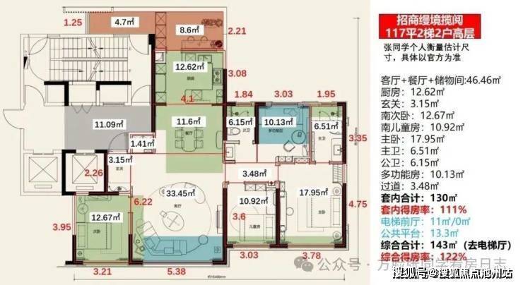 第三,产品力是王炸。项目容积率1.3,两期一共仅3栋高层、还是2梯2户,其它18栋全是8-11层电梯入户的稀缺洋房,其中洋房优化后综合得房率超过140%,比其它四代宅高出40%,甚至高层综合得房率也有120%,在买房和交物业费时换算单价就会折下来不少。