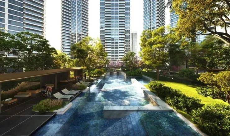 对标汇悦台的外立面,大面积玻璃幕墙,让室内采光与景观视野最大化,极致大宅体面,为都芯奢邸再造范本。