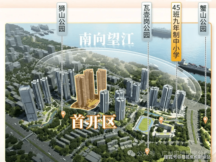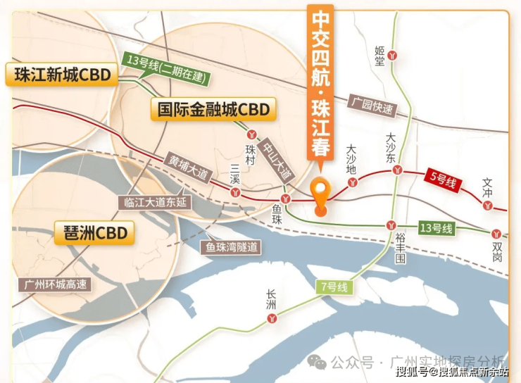 项目位于黄埔区鱼珠核心CBD板块,距离港航大厦直线距离仅约800米,5号线鱼珠与大沙地之间,是老黄埔旧改中最靠近天河的项目。