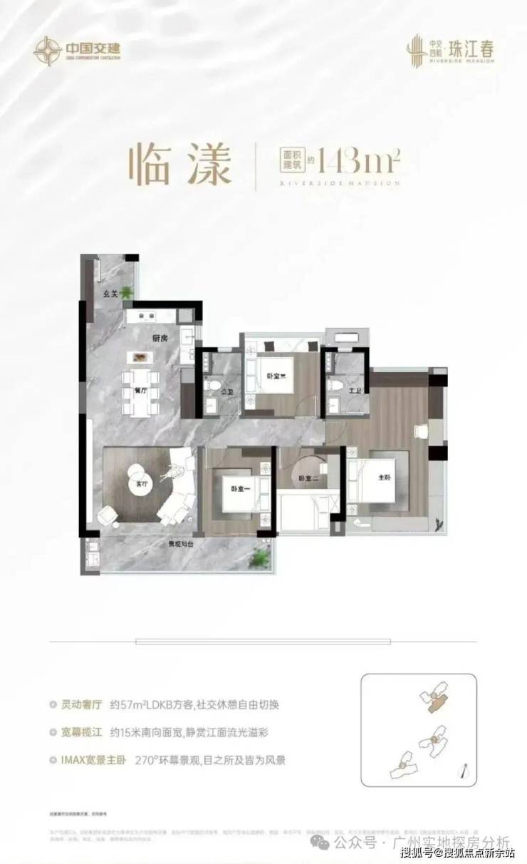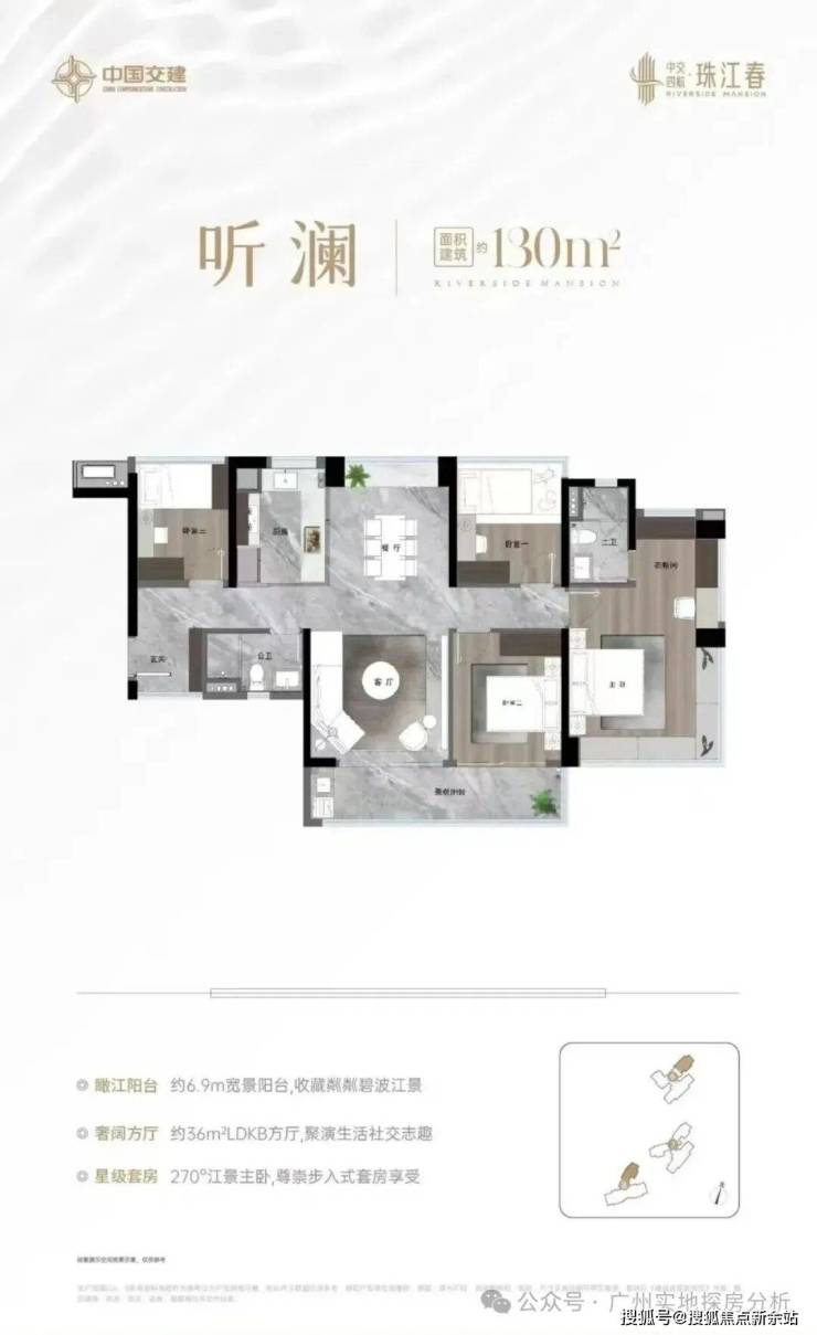 项目首开3地块,共3栋楼。面积130-143-180平使用率超110%。其中6栋43层,7栋47层,8栋45层。6#和7#均为3梯4户8#为3梯3户,户型有130/143平的四房两卫、180平的四房三卫。6#130平B户型为西南向,8#的180平户型南向略略偏东。9#两梯两户大平层,整个项目最近珠江的。6#北侧的小山狮山公园。